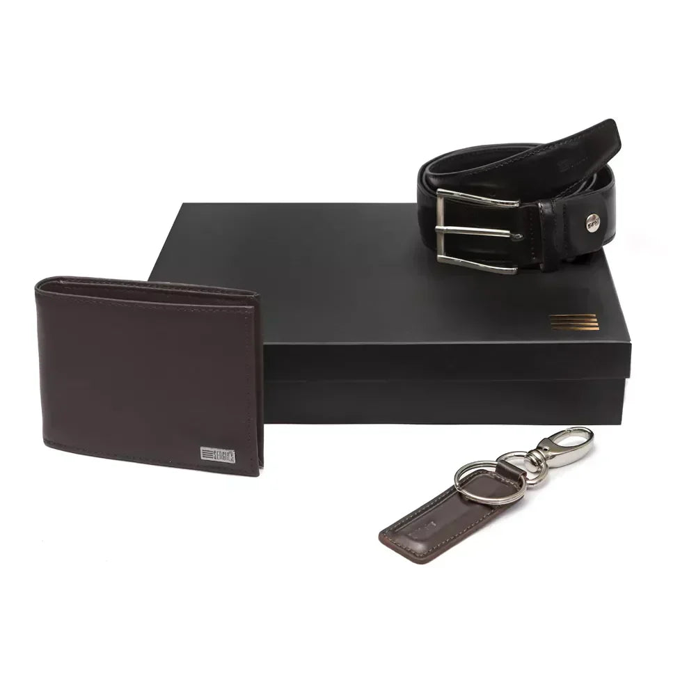 •KIT de carteira + chaveiro + cinto em elástico e couro natural de qualidade superior